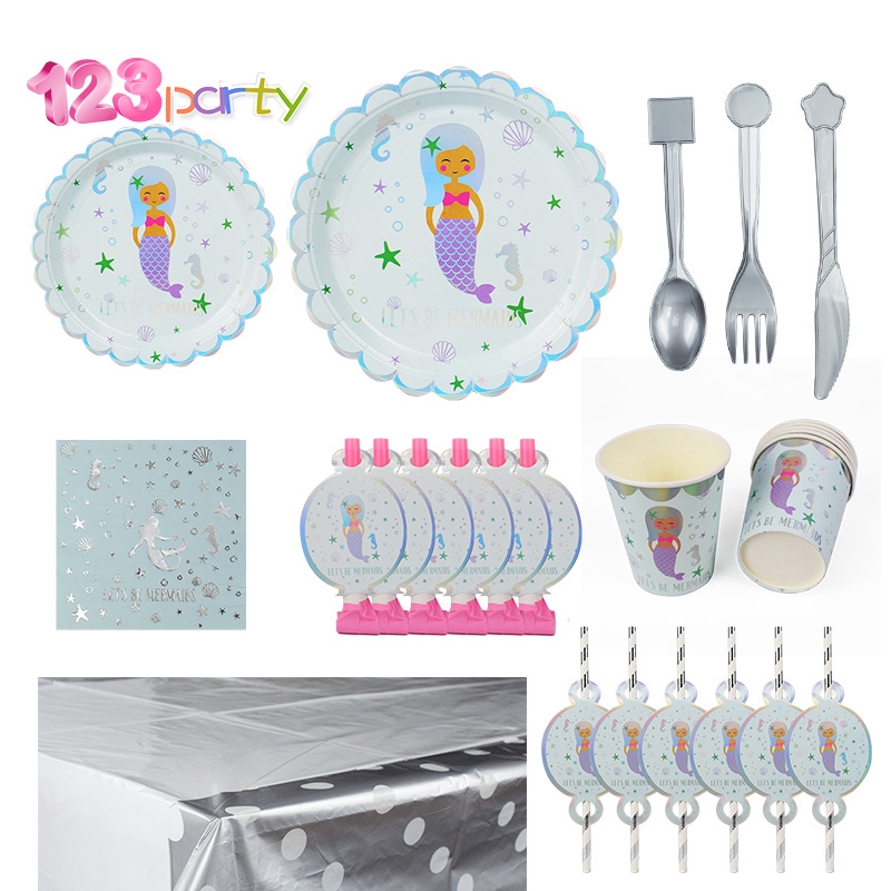 Mermaid Party Disposable Tableware Plate Cup Tablecloth Paper
