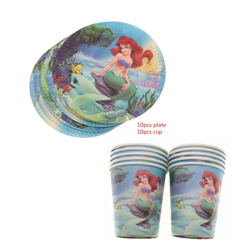 20pcs New Party Supplies Mermaid Princess Plate Cup Birthday Party