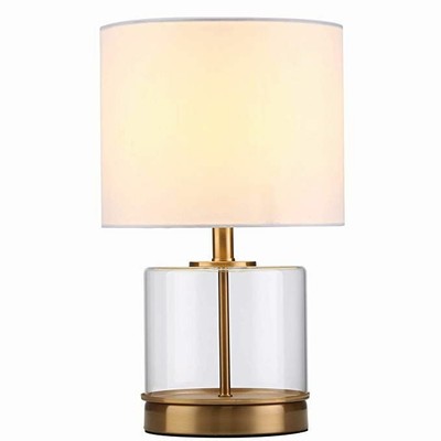 Clear Glass Table Lamp With White Lampshade Tayanuc Contemporary